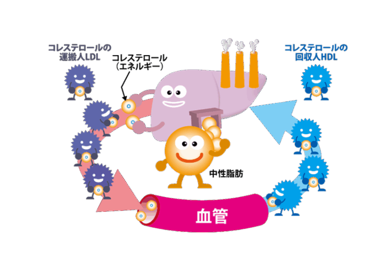 全身の余分なコレステロールを回収し、肝臓に戻す役割を担っています。血管の壁に溜まったコレステロールも掃除してくれるため、「血管のお掃除役」とも言えます。こちらは数値が「低い」と問題になります。