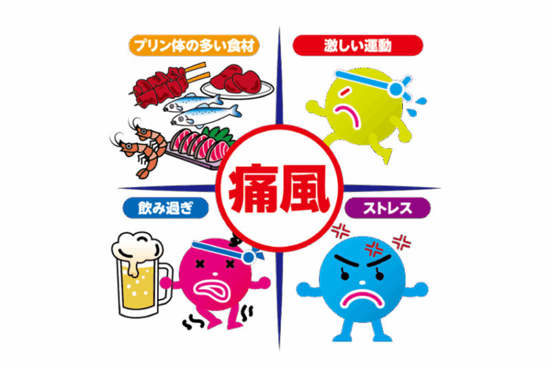 痛風の根本的な原因は、血液中の「尿酸」という物質が増えすぎること(高尿酸血症)にあります。