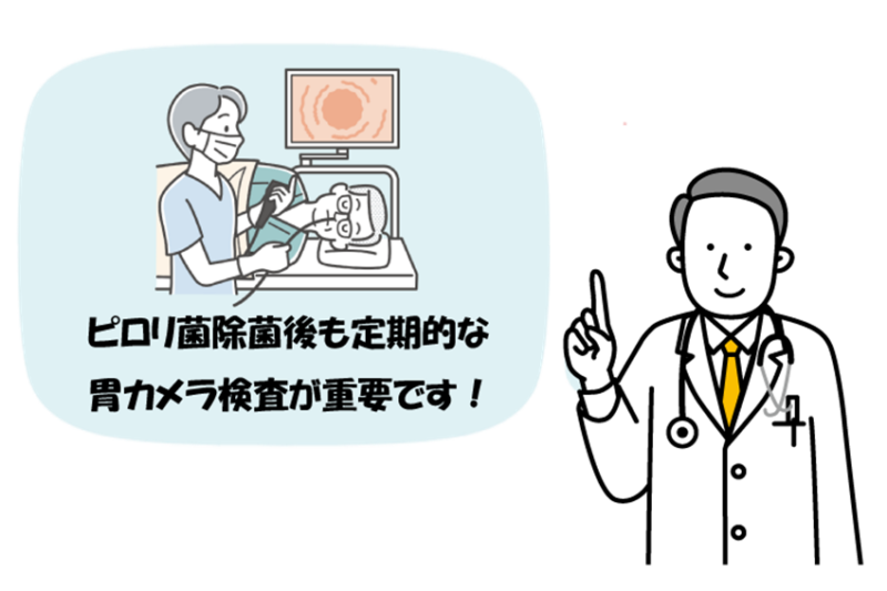 長年の感染で傷ついた胃の粘膜が元に戻るには時間がかかります。除菌後1年以内や、数年経ってから胃がんが見つかるケースもゼロではありません。