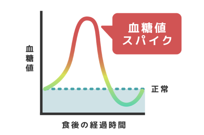 1.急上昇: 糖質を摂ると血糖値が一気に跳ね上がる。
