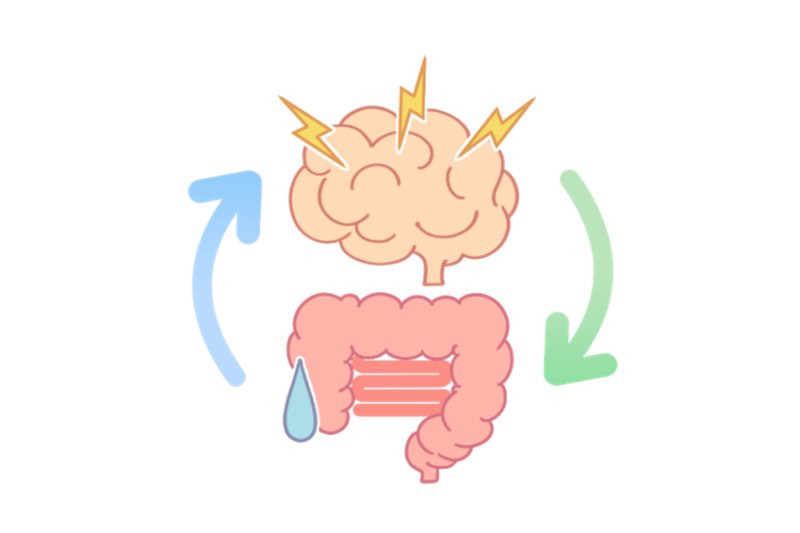 ストレスや緊張を感じると、脳から信号が送られ、腸内で「セロトニン」という神経伝達物質が過剰に分泌されます。これにより腸の動きが乱れ、ガスが一部に滞留してしまいます。さらに、IBSの方は腸が「知覚過敏」の状態になっているため、健康な人なら気にならない少量のガスでも「痛い!苦しい!」と脳が敏感に感じ取ってしまうのです。