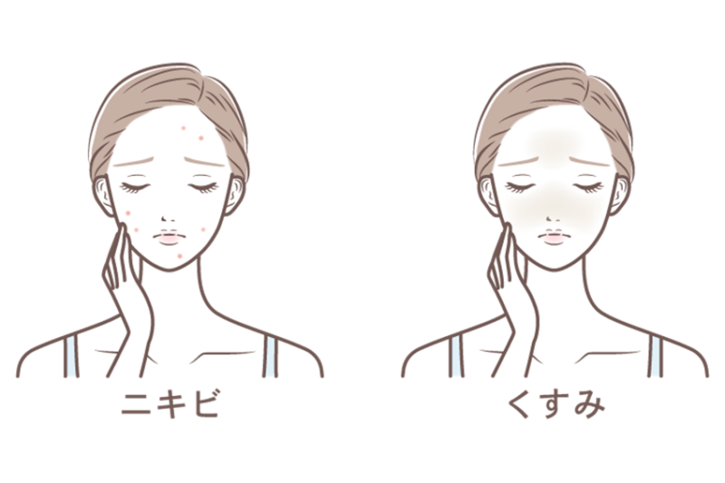 血液に乗って肌に到達した毒素は、肌の細胞にダメージを与え、以下のトラブルを引き起こします。