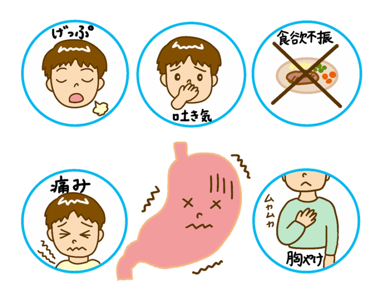 - 胃の不快感、胃もたれ、胸やけ