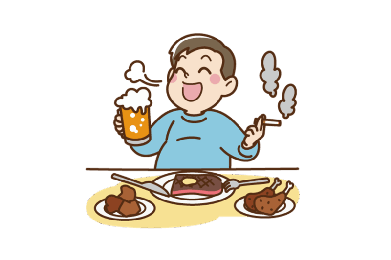 • 基本:腹7分目を心がけ、よく噛んでゆっくり食べましょう。